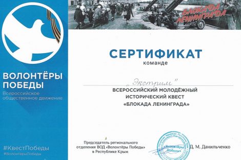 Команды нашего филиала «Максимум» и «Экстрим», приняли участие в городском квесте о блокаде Ленинграда, организатором которого выступило Всероссийское общественное движение Волонтеры Победы (Феодосийский округ).