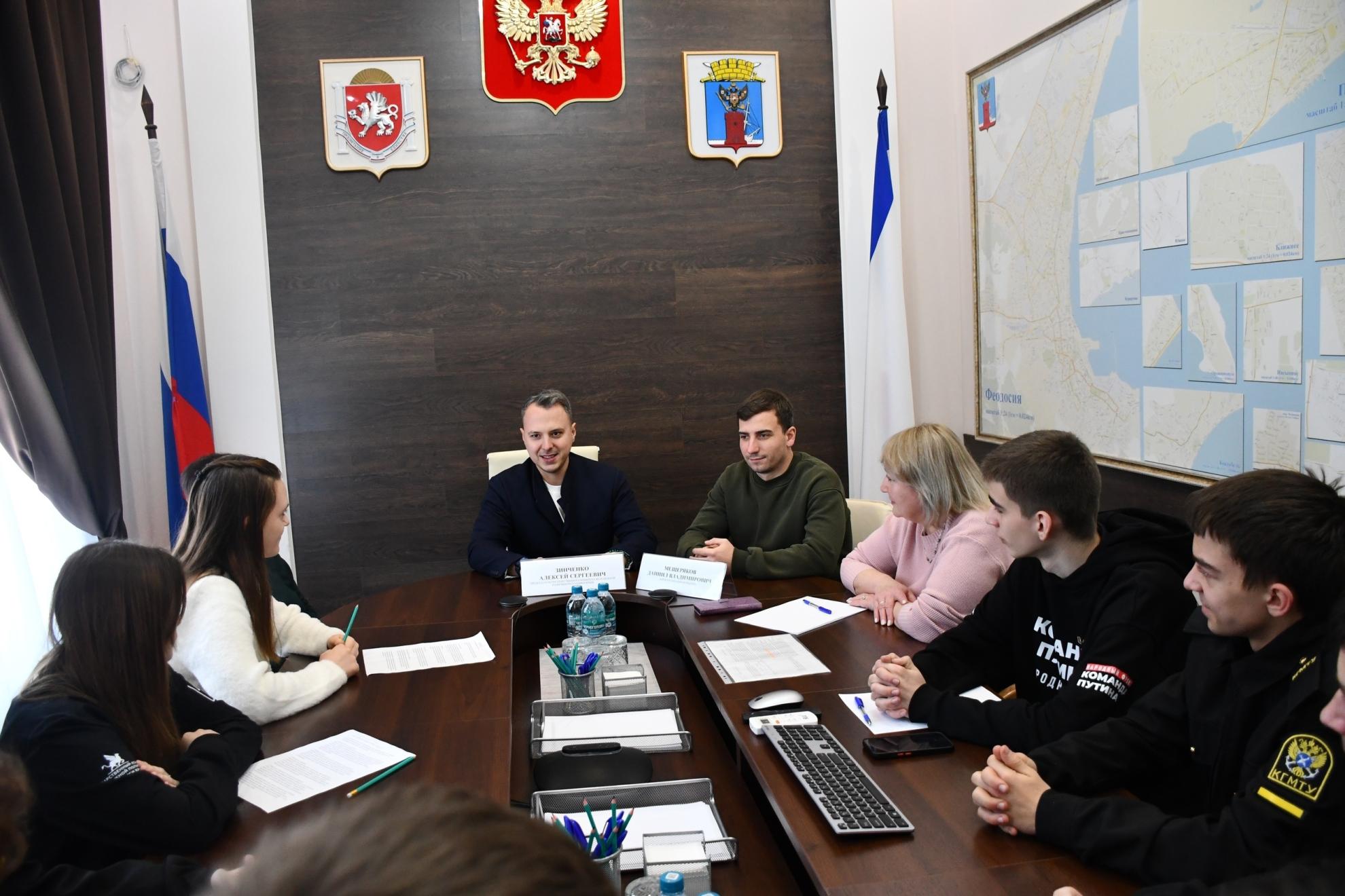 10 февраля в Администрации Феодосии состоялась встреча молодежи города с председателем Госкомитета молодёжной политики Республики Крым Алексеем Зинченко и директором Дома молодёжи Даниилом Мещеряковым.